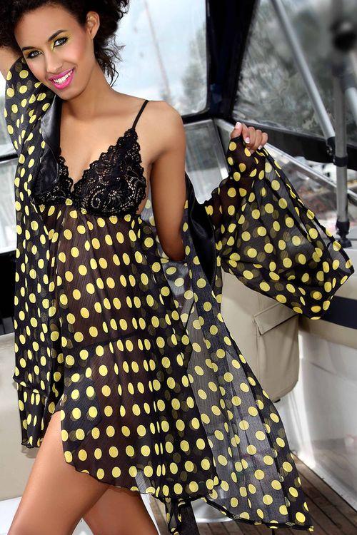 Jemná a krásna košieľka P-328 Pigeon s čipkovanými košíčkami. Priedušný materiál dodáva ľahkosť a šarm tomuto modelu. Čierne saténová tangá sú súčasťou košieľky.