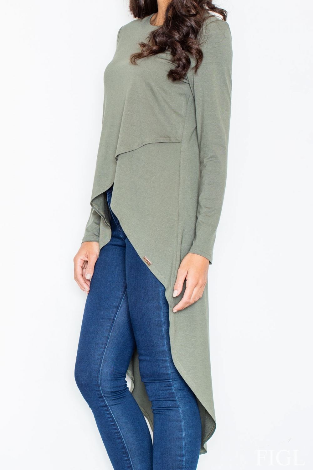 Dámska tunika M412 FIGL asymetrického strihu pre ženy, ktoré ocenia ležérne eleganciu. Tunika má dlhé rukávy a okrúhly výstrih. Vhodné pre každodenné príležitosť. K objednaniu v štyroch farbách.