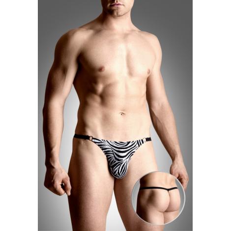 Pánske tangá 4488 SoftLine collection sú vyrobené z lesklej tkaniny s imitáciou hadej kože. Prednej i zadnej časti sú na bokoch spojené strieborným krúžkom.
